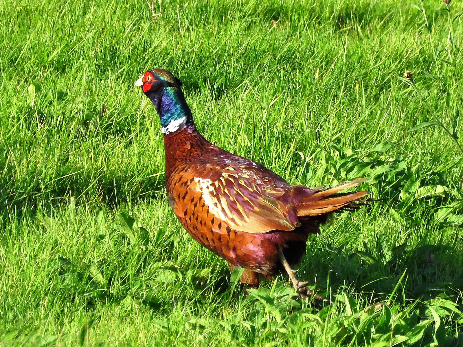Looking great in the afternoon Autumn sun this male Common (or Ring-necked) Pheasant. Yet to acquire the long tail of a breeding bird.