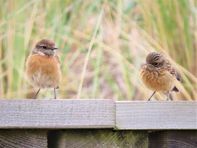 A family of Stonechats provided a welcome bonus. A female on the left and a juvenile on the right.