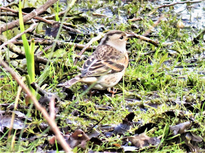 I am a bit bemused: as far as can I recall this was the same Sedge Warbler and here the bill looks normal. You can just see that above the black bordered eye-brow the crown is striped.